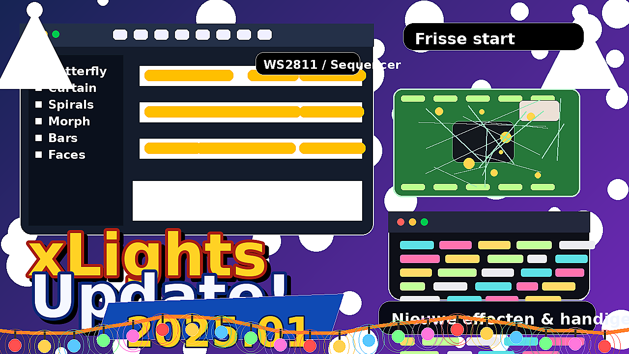 De release xLights 2025.01 ging live op 20 januari 2025. Volgens de releaselijst brengt deze versie 21 verbeteringen en 11 bugfixes mee. Geen wereldschokkende reboot, wel precies het soort onderhoud waar je in het seizoen blij van wordt.