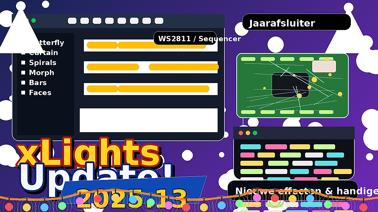 De release xLights 2025.13 ging live op 2 december 2025. Volgens de releaselijst brengt deze versie 6 verbeteringen en 18 bugfixes mee. Geen wereldschokkende reboot, wel precies het soort onderhoud waar je in het seizoen blij van wordt.